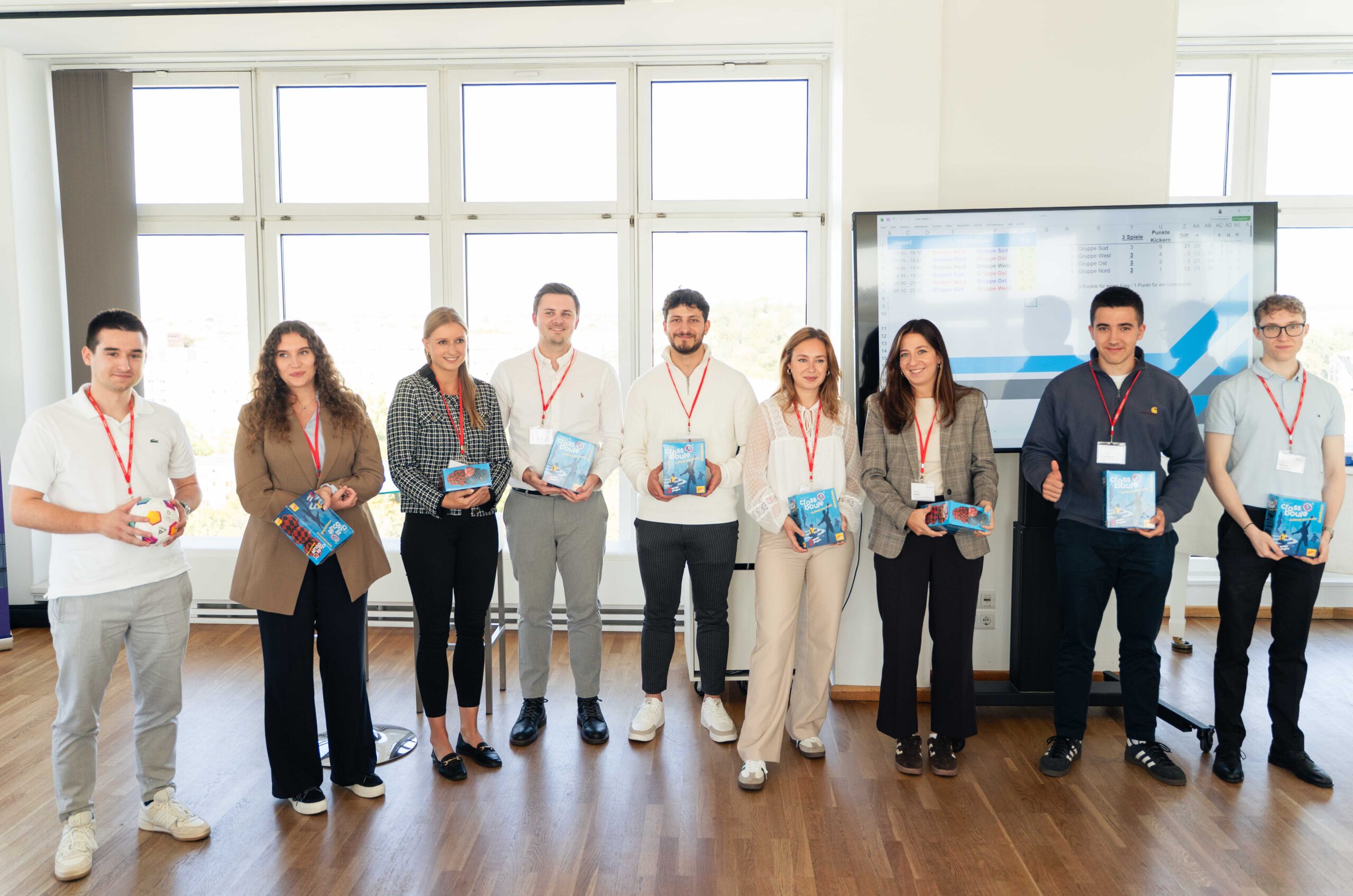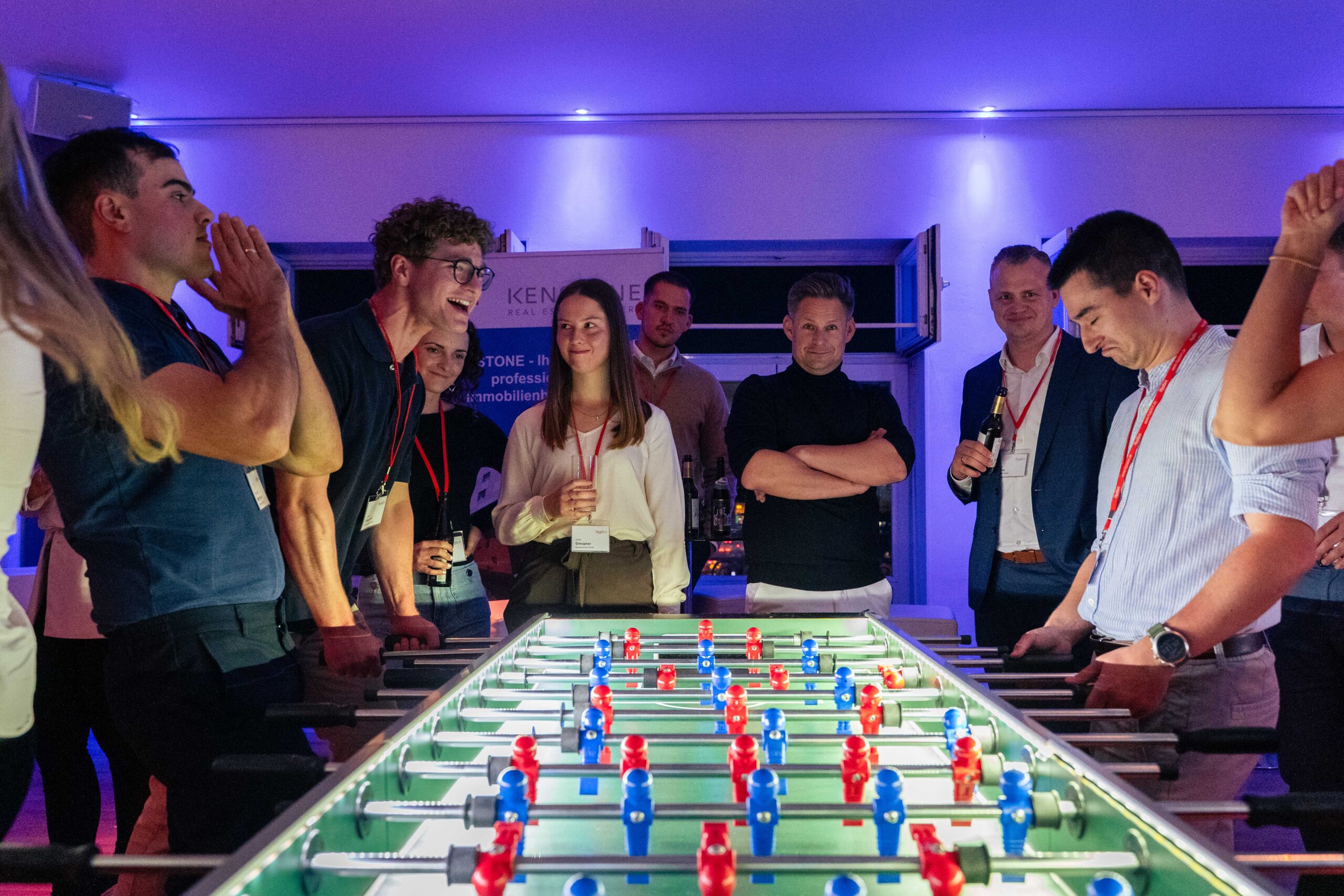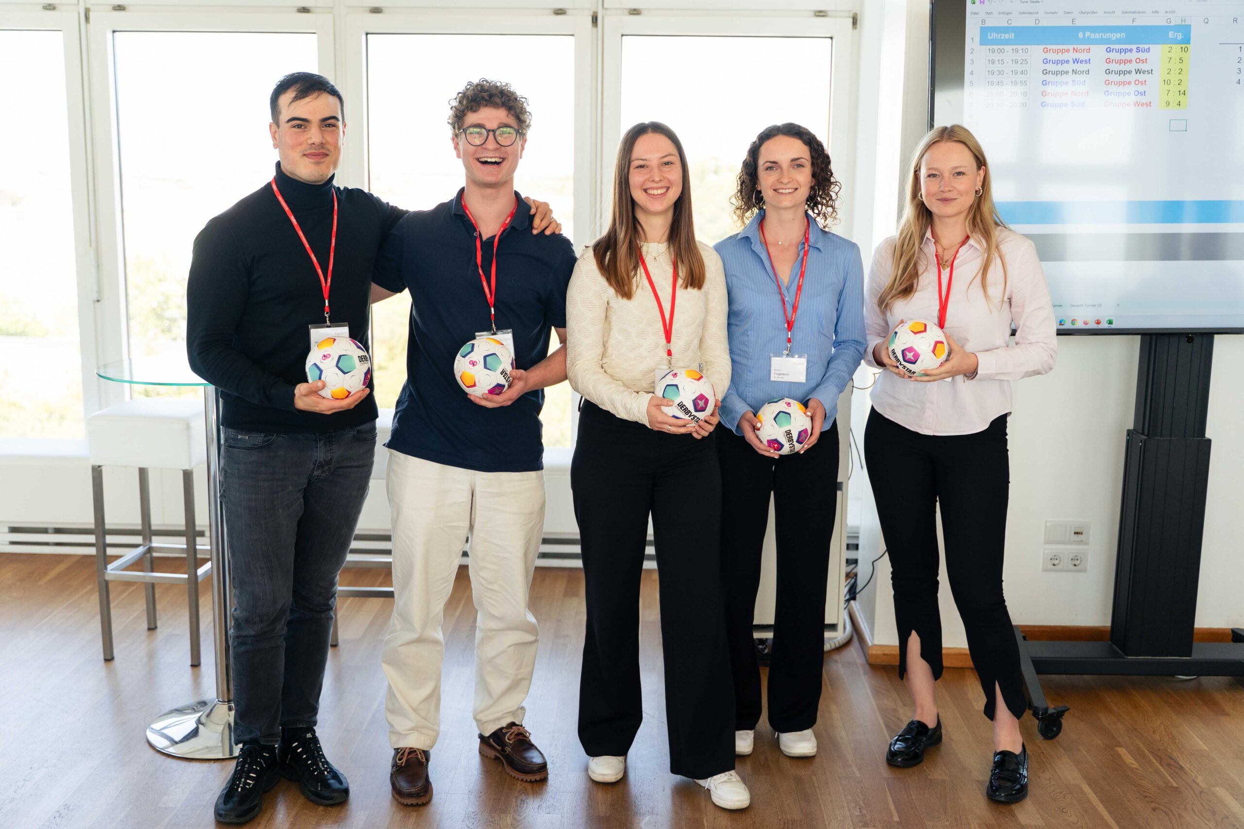 Im Anschluss an die Besichtigung fand wieder das heiß erwartete Maxi-Kicker-Turnier statt. Teams, gemischt aus Studierenden und Referenten, traten dabei an einem acht-Personen-Kicker gegeneinander an. In diesem Jahr triumphierte das Team Süd nach einem spannenden Turnierverlauf und setzte sich erneut gegen die anderen Himmelsrichtungen durch. Trotz des Titelgewinns von Team Süd bleibt die Vorfreude auf das nächste Jahr ungebrochen, in dem die anderen Teams sicherlich alles daran setzen werden, dem starken Team aus dem Süden die Krone streitig zu machen.
